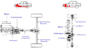 Se compone de elementos mecánicos (cadena cinemática) que conducen o transmiten hacia las ruedas motrices del vehículo, el movimiento mecánico de rotación generado por el motor.
